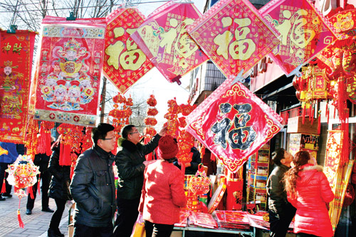 2月1日,原平市年货市场上红红火火,一派喜庆景象。市民们高高兴兴选年货,欢乐祥和喜迎新春佳节。(赵月仁 摄)