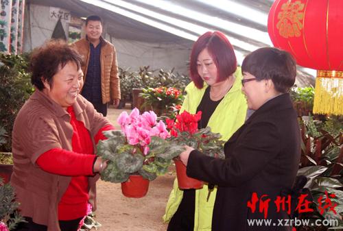 2月15日,原平市花卉园区福地花卉大棚里春意浓浓,市民们正在挑选鲜花,随着传统观念的改变,如今拜年走亲访友送鲜花也成为新时尚,同时也增加了农民收入。(赵月仁 摄)