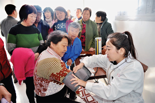 3月7日上午,代县团县委在上馆镇橙草沟村举行“传承雷锋精神,投身脱贫攻坚”志愿服务活动启动仪式,旨在动员全县各级团组织和广大团员青年开展为期一个月的以“传承雷锋精神,投身脱贫攻坚”为主题的“送温暖、献爱心”、“送金融”、“送科技”、“送文明健康”系列学雷锋志愿服务活动。启动仪式现场,共收到全县捐赠的课桌凳1900套、图书1126册、文具320件、衣物1063件、书包33个、体育用品14件,将分发到贫困地区农村和学校。图为志愿者为民群众义诊。(石俊文 摄)