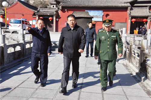 3月3日,市长助理、公安局长杨梅喜深入五台山景区,就重点寺庙的安全防范和消防工作进行了专项调研和指导。杨梅喜一行深入各寺庙,仔细查看了寺庙的消防设施、消防管理和安全监督检查情况,他要求五台山公安分局要切实做好寺庙的消防安全工作,不断完善安全管理模式,积极服务游客,确保寺庙的绝对安全。(韩波 摄)