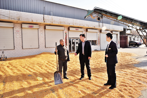 代县阳明堡镇崔庄村农民侯德英,去年冬天从泓都村镇银行贷款60万元,帮助农民群众销售玉米500万公斤,创收70万元。图为侯德英晾晒即将出售的玉米。(石俊文 周世明 摄)