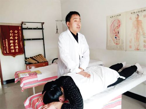 “黑夜给了我黑色的眼睛,我却用它来寻找光明。”对于神池县怡园小区双目失明的残疾人刘建华、任慧荣夫妇来说,来到世间四十多年,虽然饱受失明的痛苦,但他们身残志坚,自食其力,苦学手艺,服务众人,让生活充满光明。1997年从太原盲人职业高中毕业以来,20年间夫妻俩先后辗转广东、山西等省,服务患者万余人,广受好评。图为刘建华为患者治疗。(郑志东 摄影报道)