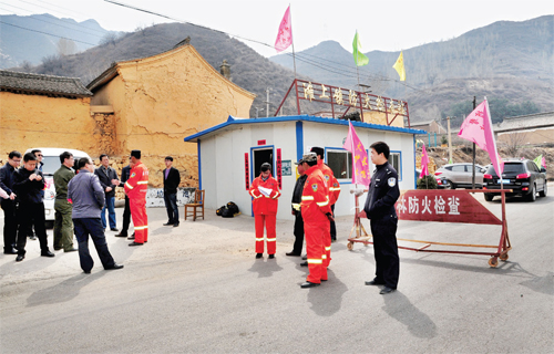 4月6日,代县滩上镇防火检查站消防人员正在对进入山区的人员、车辆进行护林防火安全检查。立春以来,代县县委、县政府大抓护林防火工作,各乡镇实行乡镇干部包村、包片责任制,组建了30—50人的护林防火突击队,在通往山区、林区的各个交通要道设立护林防火检查站,对过往车辆、人员进行护林防火安全检查和护林防火宣传教育。(杨继兴 摄)