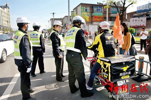 4 月18 日,市公安局交警支队组织直属大队民警在城区主要街道进行电动车交通违法整治,并劝导骑电动车的市民在出行时,切记安全,各行其道,遵守交通规则。图为查处现场。(张军 摄影报道)