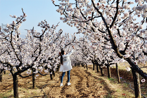 又到一年四月天,赵庄杏花满山野。4 月16 日繁峙县繁城镇赵庄村沉浸在一片花的海洋中,许多游人前来赏花。赵庄村地处繁峙县城北8 公里,该村规模栽植白水大杏5120 亩,人均年收入1.3 万元,是我省闻名的“一村一品”白水大杏专业村。(乔伟 李晓军 摄)