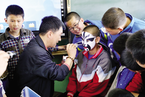 4 月21 日,静乐县爱乐希望小学校园内一片欢声笑语,受文化部委托,国家京剧院京剧演员马建华、王改欣,中国歌剧舞剧院舞蹈演员王乐、王亮在静乐开展了为期十天的文化艺术培训活动。图为培训现场。(闫晓梅 摄)