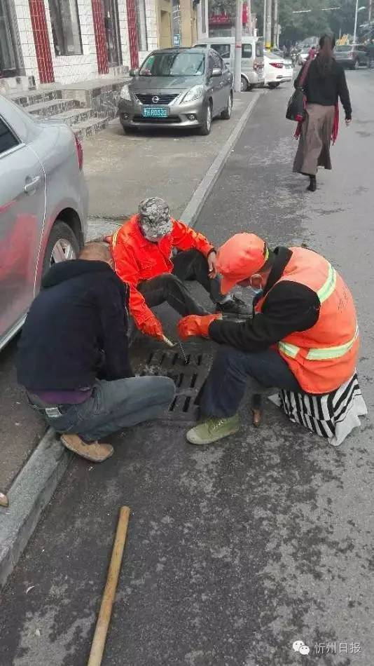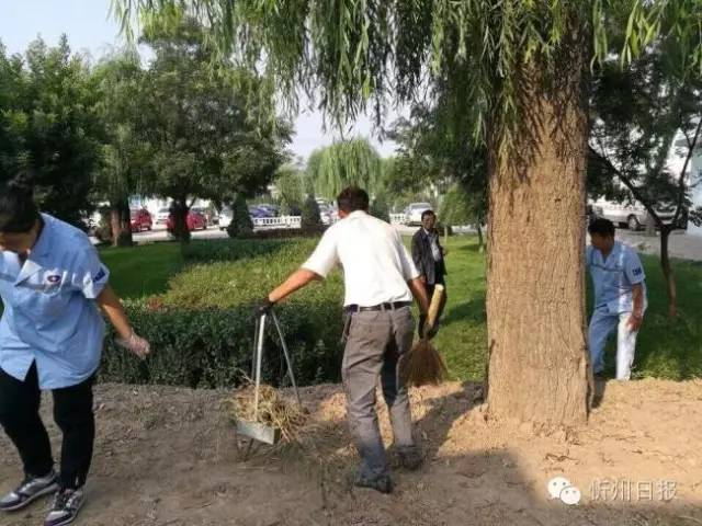 图为忻州市中心医院职工利用下班时间在捡烟蒂。