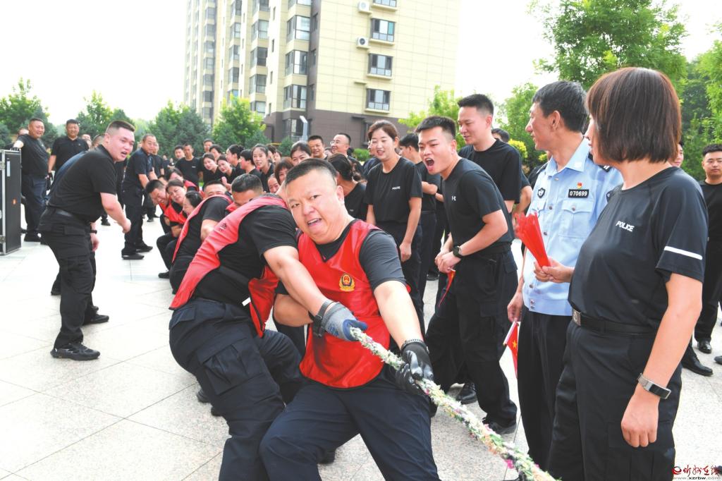 8月14日,定襄县公安局举办了以“文化强警筑根基砥砺奋进新时代”为主题的第十五届警营文化节暨趣味运动会,旨在活跃警营文化、提高民辅警身体素质、展现其良好形象、凝聚队伍活力。图为比赛现场。(张锦娟摄)