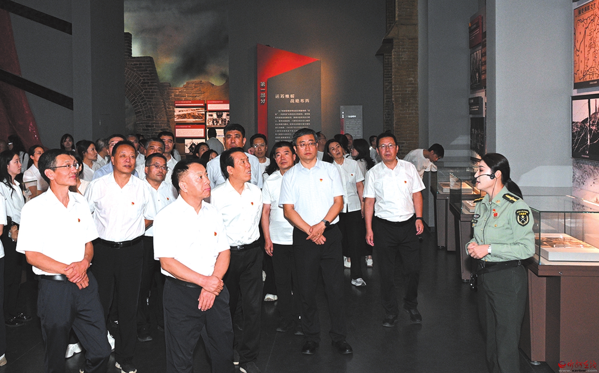 在中国人民抗日战争胜利80周年来临之际,人行忻州市分行组织50余名优秀党员和党务工作者来到阳泉市,参观百团大战纪念馆,缅怀抗战英烈,重温中国共产党领导抗日军民同仇敌忾、勇御外侮的光辉历史。图为参观百团大战纪念馆。(蒋鹏程摄)
