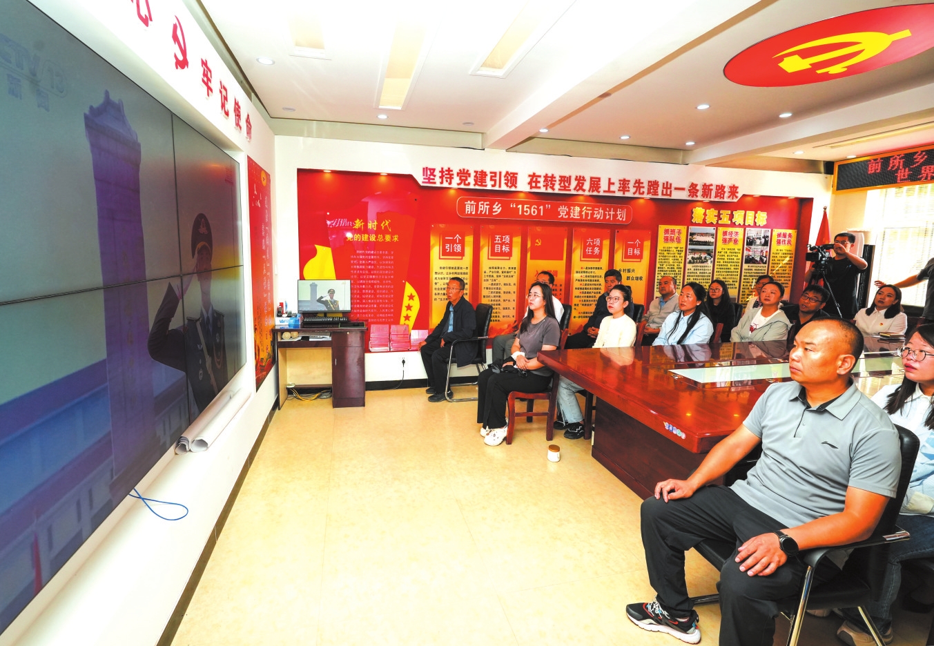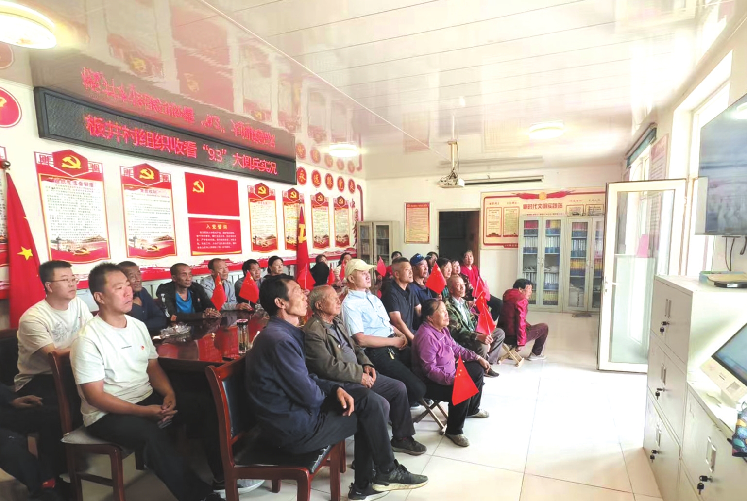五寨县前所乡党员干部观看纪念大会。刘笃效摄