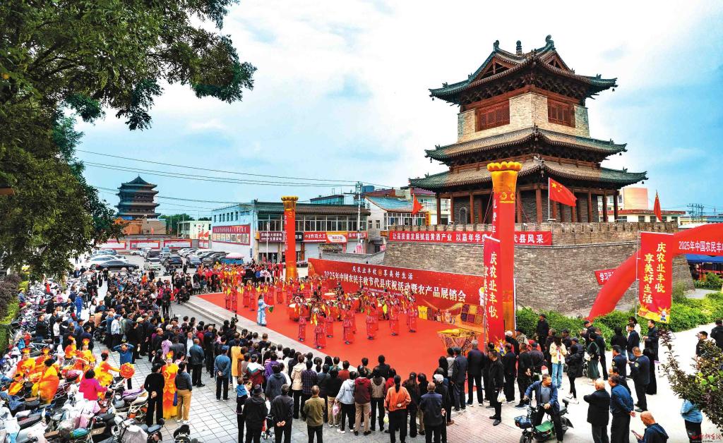 近日,“庆农业丰收,享美好生活——2025年中国农民丰收节代县庆祝活动暨农产品展销会”在代县钟楼广场举行。本次活动不仅呈现了丰富多彩的文艺节目,还设有彰显本地特色的黄酒展区、非遗展区,以及各乡镇特色农产品展区,吸引了众多游客。(王晋东摄)