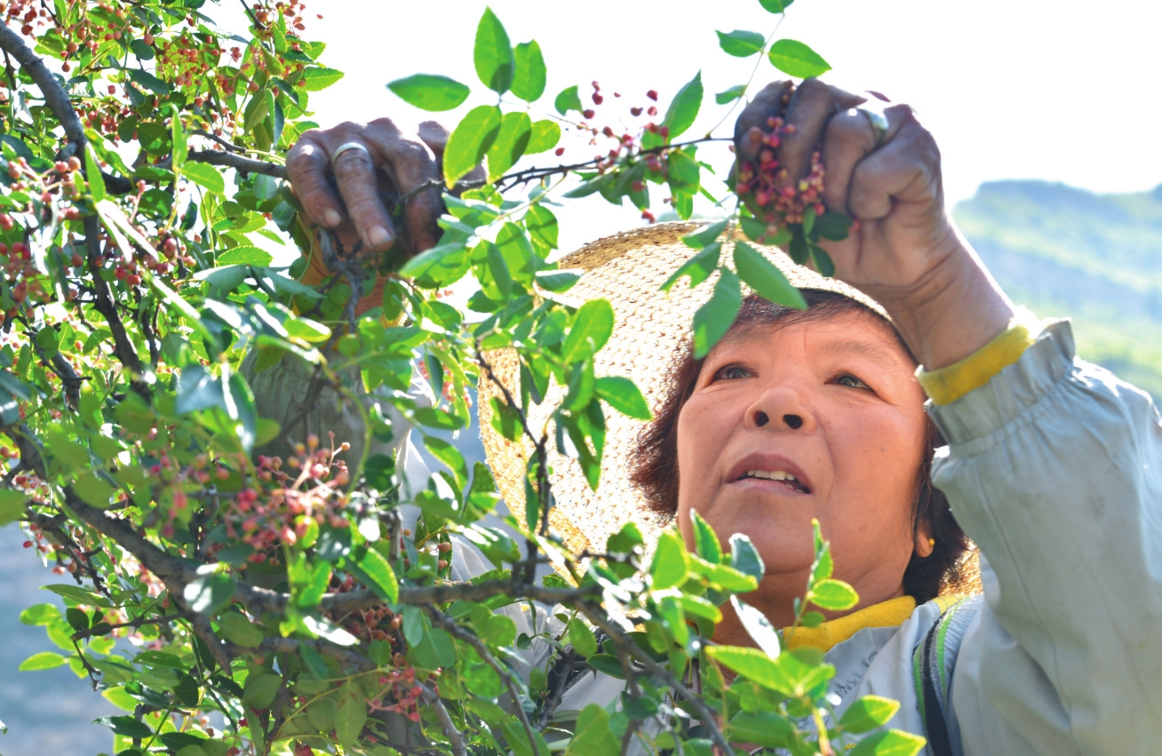 五台县陈家庄乡罗家庄村农民采摘花椒。卢俊华摄