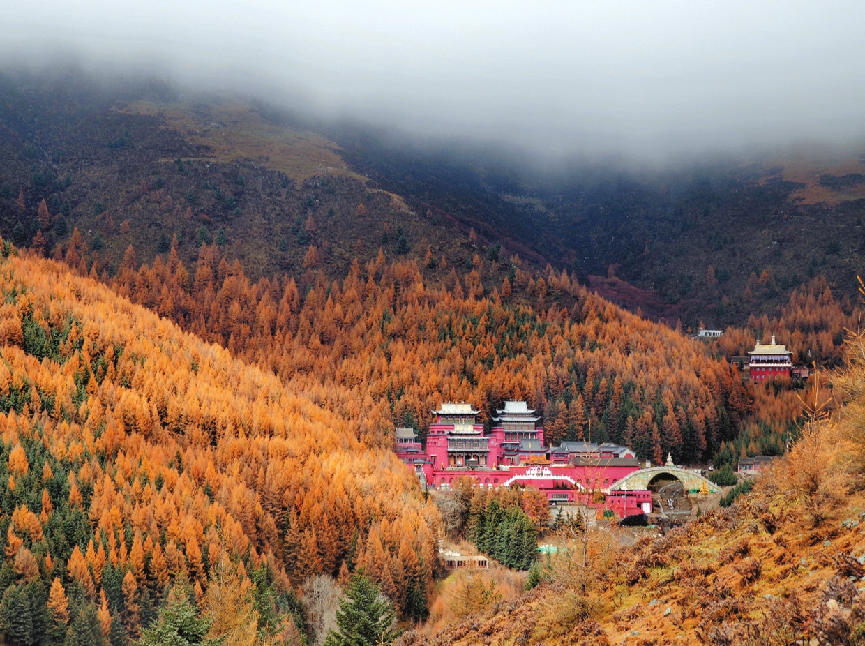 秋季已近尾声,五台山的秋色却进入最绚烂的篇章。漫山松柏与阔叶林褪去翠绿,换上金色、赤红与橙黄的华服,与千年古刹的红墙黛瓦相映成景,吸引海内外游客共赴这场秋日禅意之约。