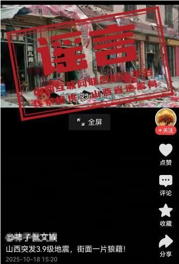 10月18日,有网民发布“山西突发3.9级地震,街面一片狼藉!”相关信息,引发网民关注,经向相关部门确认,该信息与事实不符。
