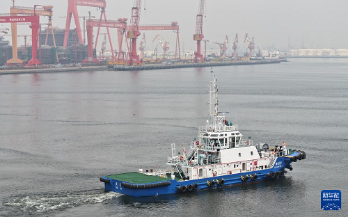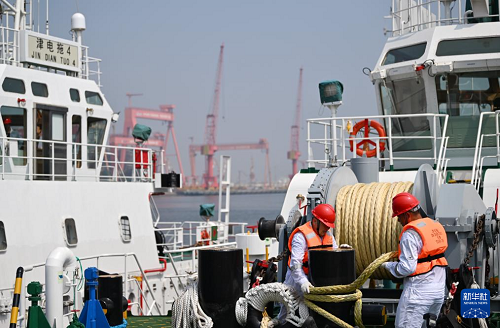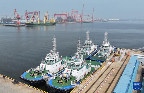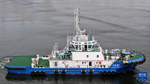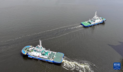 8月13日,由4艘纯电动港作拖轮组成的“绿色舰队”在中船天津码头鸣笛启航。