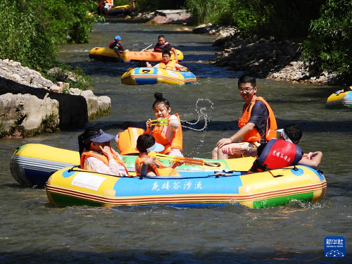 8月13日,游客在四川省达州市渠县临巴镇凉桥村漂流游玩。(新华社发 邓良奎 摄)