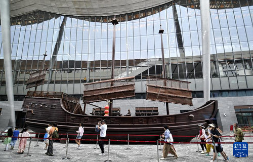 8月15日,观众在北京市通州区大运河博物馆参观。(新华社记者 李欣 摄)