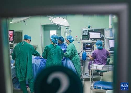 8月18日,医生在贵州省安顺市人民医院手术室为患者进行手术治疗。(新华社发 陈熙 摄)
