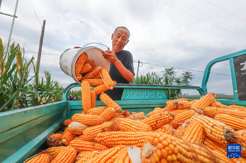8月23日,河北省玉田县虹桥镇农民在收获玉米。(新华社发 刘满仓 摄)