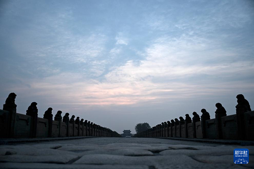 9月3日清晨拍摄的北京卢沟桥。(新华社记者 宋彦桦 摄)