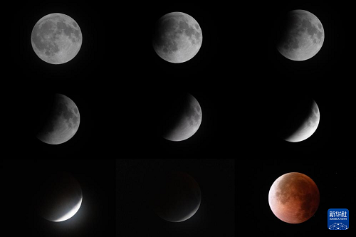 这是月全食过程(拼版照片,9月7日至8日摄)。(新华社记者 姜帆 摄)