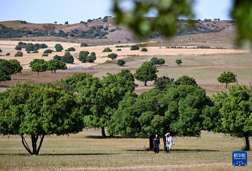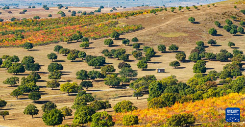 9月27日,游客在兴安盟科尔沁右翼中旗五角枫生态旅游景区游玩。(新华社记者 贝赫 摄)