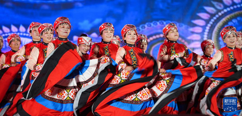 9月28日,农民广场舞表演队在山东省邹平市迎国庆群众广场舞大赛上表演。(新华社发 董乃德 摄)