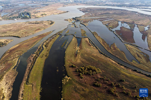 这是10月7日拍摄的哈尔滨金河湾湿地公园景色(无人机照片)。(新华社记者 王松 摄)