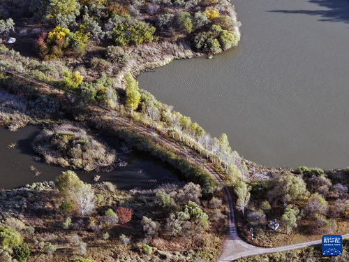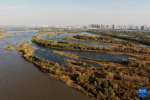 这是10月7日拍摄的哈尔滨太阳岛国家湿地公园景色(无人机照片)。(新华社记者 王松 摄)