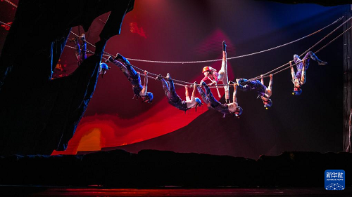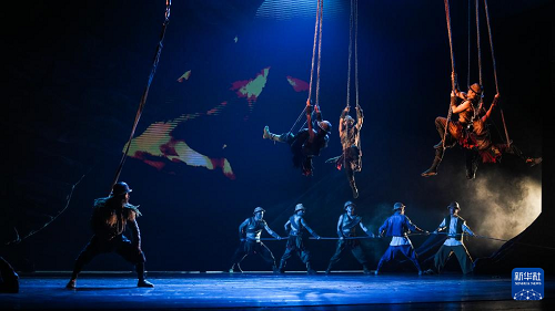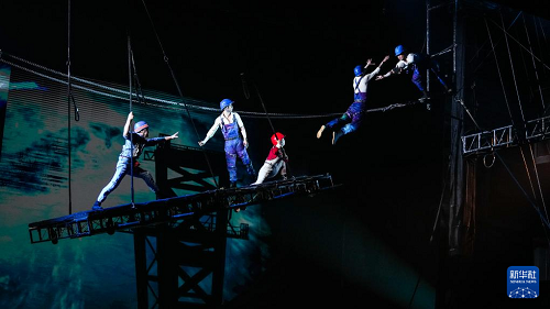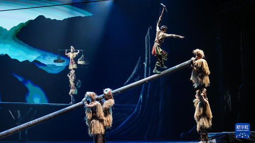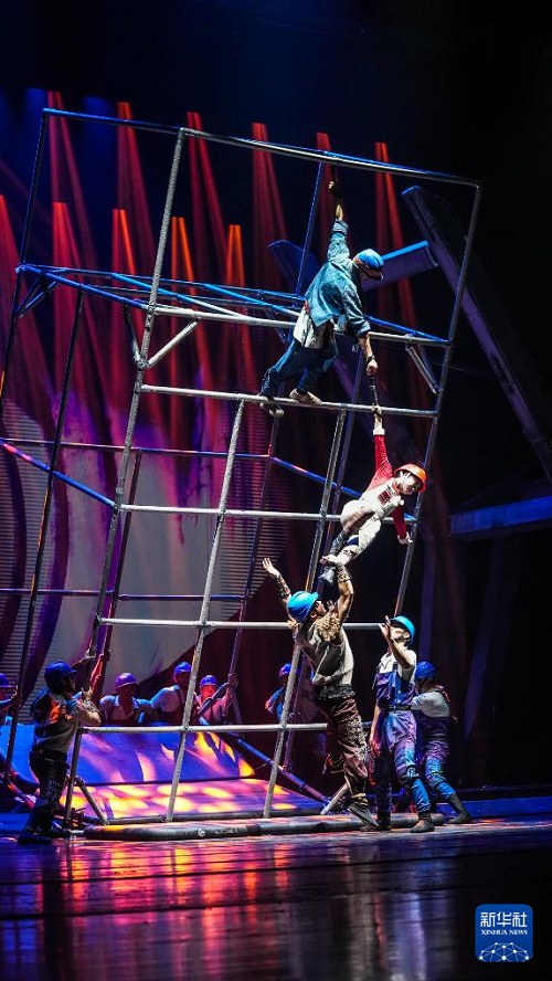 10月9日,演员在表演杂技剧《脊梁》。(新华社记者 陶亮 摄)