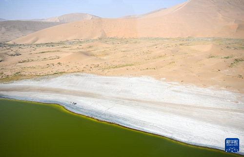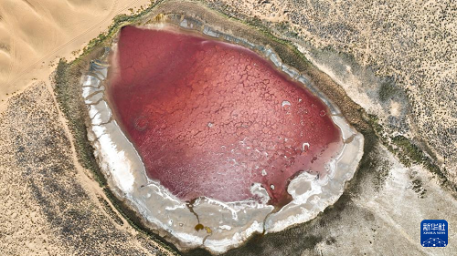10月22日拍摄的巴丹吉林沙漠中的红海子(无人机照片)。(新华社记者 贝赫 摄)