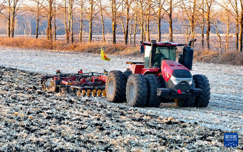 10月23日,农机在黑龙江北大荒农业股份友谊分公司田间进行整地作业 (无人机照片)。(新华社发 徐宏宇 摄)