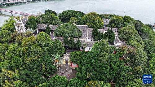 10月27日,游客在重庆奉节白帝城景区参观(无人机照片)。(新华社记者 刘潺 摄)