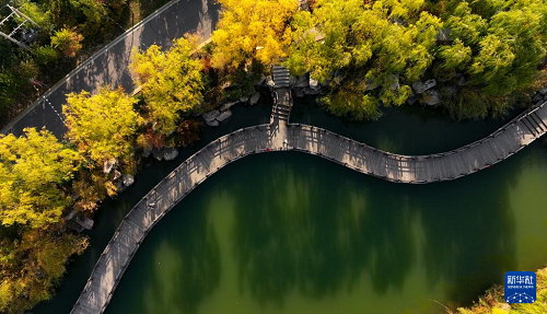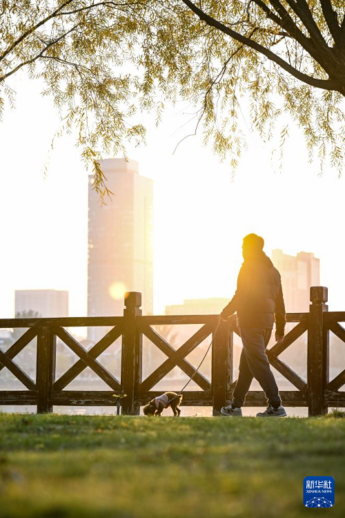 10月28日,市民在银川市海宝公园休闲、散步。(新华社记者 冯开华 摄)