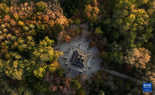 这是10月28日在银川市海宝公园拍摄的秋景(无人机照片)。(新华社记者 冯开华 摄)