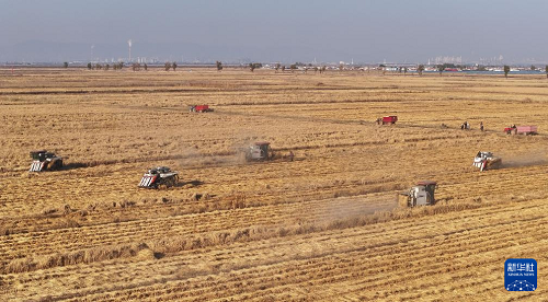 近日,黄河“几字弯”顶端一带天气晴好,农民抓紧时间抢收庄稼。当地今年降水频繁,导致沿河部分地区农田积水、土壤偏湿,前些日子大型机械无法进入田间作业,黄河沿岸部分农田秋收推迟。