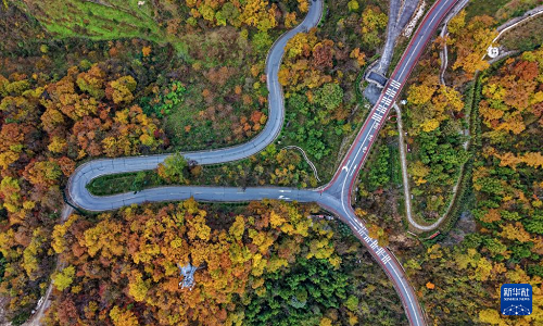 11月10日拍摄的湖北省襄阳市保康县马桥镇景色(无人机照片) 。(新华社发 陈泉霖 摄)