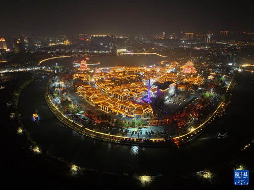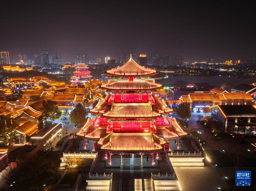 京杭大运河沧州段全长216公里,南北贯穿沧州市域,流经吴桥、东光、南皮等8个县市区。近年来沧州市统筹做好保护、传承、利用文章,扎实推进大运河文化带建设,促进文旅产业融合发展。夜幕下,京杭大运河沧州段沿线众多建筑流光溢彩,千年运河与城市风貌在夜色中完美交融。