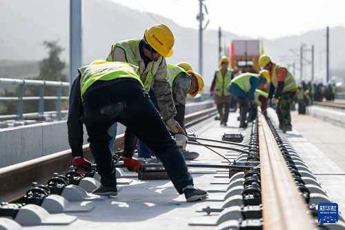 11月27日,在湖北十堰神定河特大桥上,西安至十堰高速铁路(简称“西十高铁”)全线最后一对长钢轨铺设落地,标志着西十高铁全线铺轨工程顺利完工,为后续联调联试奠定基础。