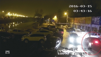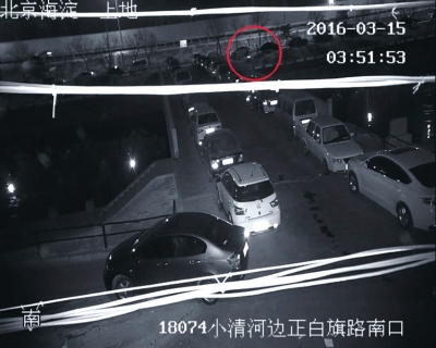 1:海淀警方查阅案发地附近大量监控,锁定了嫌疑车辆。