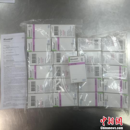 经查验发现,背包内放置着23盒崭新的药物,共计1.4千克。这些药物分四排用透明塑料纸缠绕,每个盒子内装有一个塑料药瓶,内有50片药丸。药盒上及内部的说明书均为外文印刷。在最外面包装上,贴着用中文繁体字印刷的“毒药”和“处方药物”字样。关员立刻查阅了药品说明,发现这些药物居然是被称为“最强安眠药”的氯硝西泮。