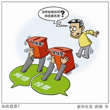 从红遍大江南北的超女、快男开始,各种评选活动日益增多,最萌宝贝、最美司机、最美景点等等,你方唱罢我登场,好不热闹。投票手段也不断演进,手机短信、网络海选、朋友圈投票等,花样翻新、不一而足。投票方式虽与时俱进,衡量投票结果的标准却未变,票数多少固化为让各方“信服”的指标,如何获得票数则一概不论。