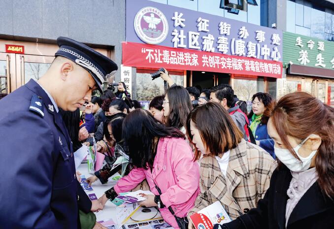 3月7日上午,我市妇女联合会、市公安局禁毒支队联合有关单位,在忻府区禁毒教育基地开展“不让毒品进我家,共创平安幸福家”专场禁毒宣传活动。此次活动旨在进一步加大禁毒宣传教育的力度,提高广大市民识毒、拒毒、防毒的意识,尤其发挥广大妇女和家庭对禁毒的宣传作用,增强青少年远离毒品的意识,大力营造禁毒宣传教育的浓厚氛围,加强和巩固禁毒工作成果,不断推动禁毒工作取得重大突破。(曹建国 摄)