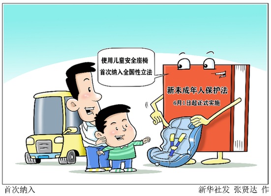 新修订的《未成年人保护法》于今年6月1日起正式实施,明确提出未成年人的父母或者其他监护人应当“采取配备儿童安全座椅、教育未成年人遵守交通规则等措施”,防止未成年人受到交通事故的伤害。