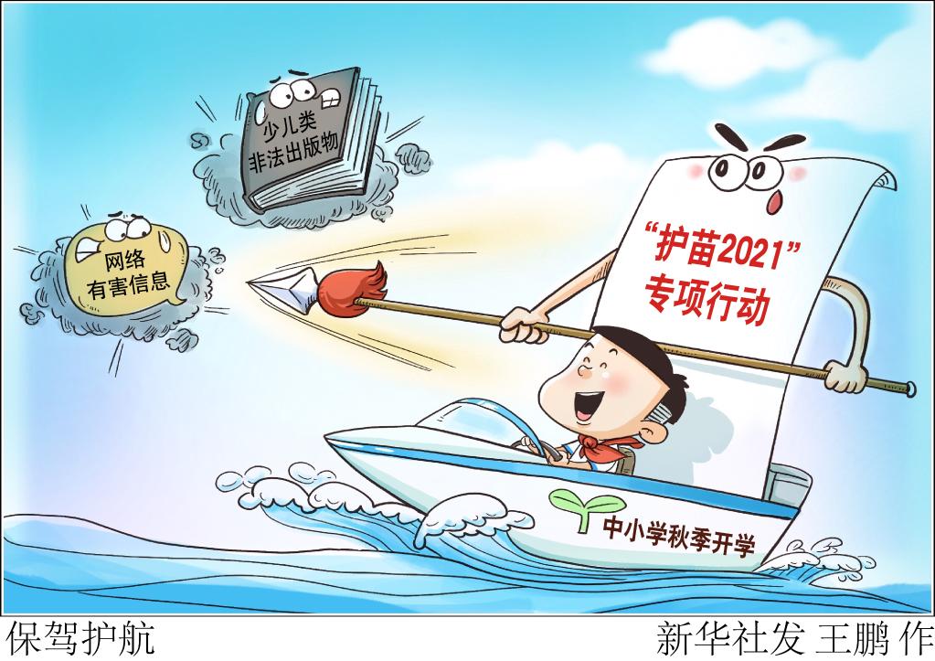 新华社北京9月6日电(记者史竞男、王鹏)按照全国“扫黄打非”办公室部署安排,各地“扫黄打非”部门近期深入开展“护苗2021”专项行动,在专项整治暑期文化市场基础上,积极开展“护苗·开学季”活动,为中小学秋季开学保驾护航。
