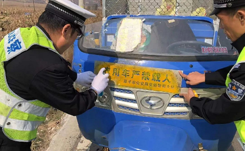 为加强农村三轮车违法载人安全管控,近日,原平市公安局交通警察大队结合道路交通事故预防“减量控大”工作,在全区范围内扎实开展三轮车违法载人专项整治行动,有效消除了交通安全隐患,净化了农村交通秩序。