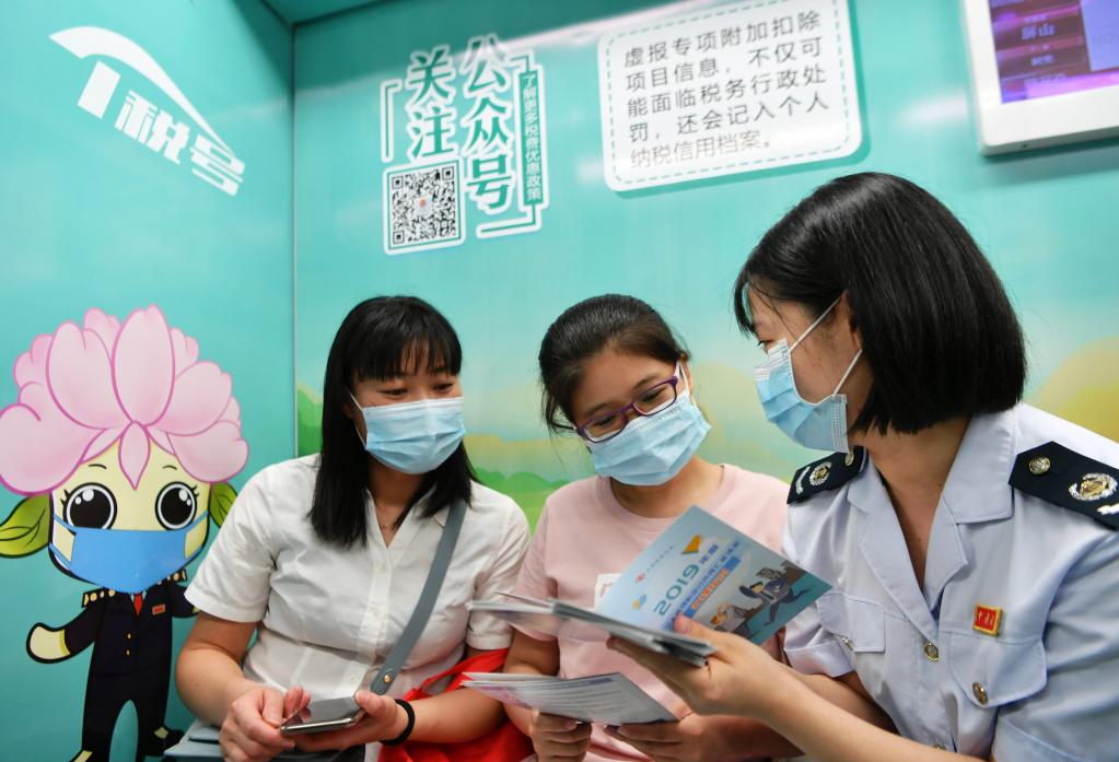 税务工作人员向市民宣传个人所得税及年度汇算相关知识。新华社记者魏培全摄