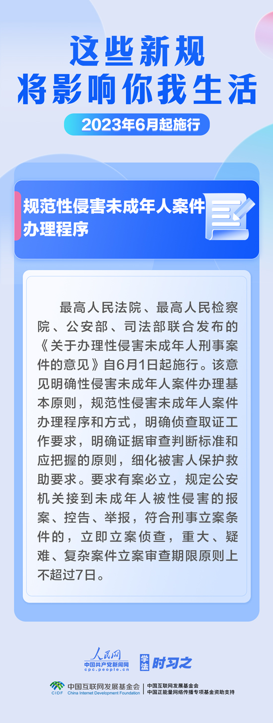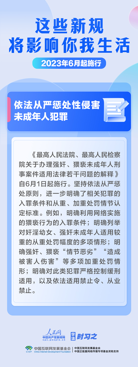 依法从严惩处性侵害未成年人犯罪,21个省份婚姻登记可“跨省通办”,规范个人信息出境活动……6月,这些新规施行,将影响你我生活。
