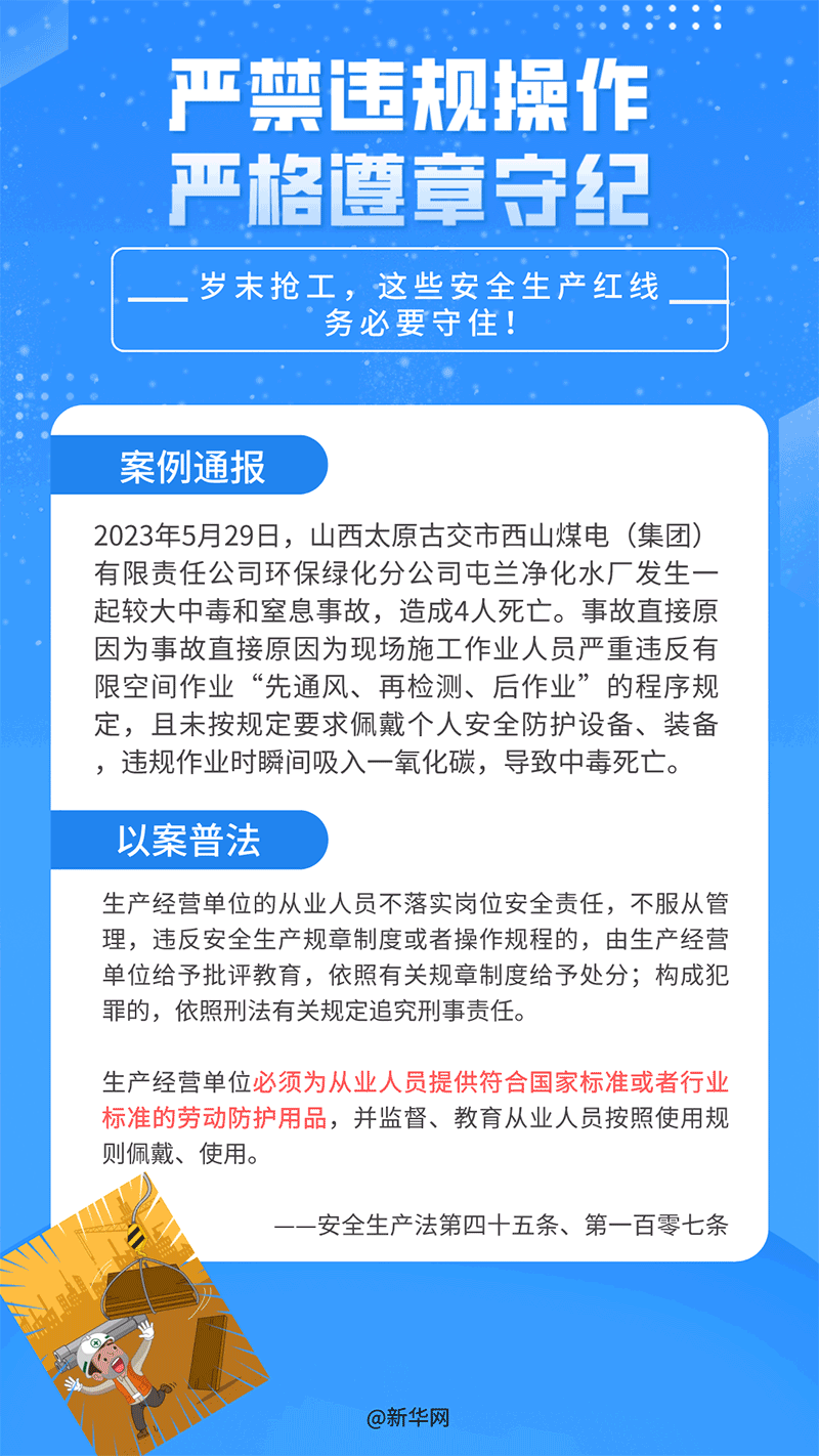 12月1日至7日是第七个安全生产法宣传周,又恰逢岁末年初,生产经营建设活动进入旺季,一些企业抢工期、赶进度,人们思想管理容易产生松懈麻痹的疲劳期,也是生产事故的高发期。以下是近期各地通报的部分案例,希望大家铭记安全,警钟长鸣!