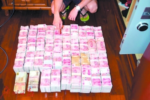 警方在惠州破获一宗地下钱庄案时缴获的涉案现金。